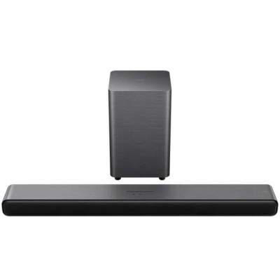 The TCL S55H soundbar is an audio device designed to significantly enhance the home sound experience, combining advanced technology with an elegant black design. This soundbar features Dolby Atmos 2.1 technology, delivering three-dimensional surround sound capable of reproducing precise and immersive audio effects, ideal for home cinema and multimedia content. It includes a wireless subwoofer that provides deep and powerful bass without the hassle of extra cables, making it easy to integrate into any space. Its acoustic power ranges between 40 W and 60 W, ensuring adequate volume for medium-sized rooms with clarity and quality. Connectivity is versatile, offering Bluetooth to play music directly from mobile devices wirelessly, and support for eARC (Enhanced Audio Return Channel), which improves high-definition audio transmission from compatible TVs. Additionally, it stands out as a speaker that can be easily integrated with other systems, expanding its usage possibilities. The combination of these features makes the TCL S55H a practical and high-performance solution for those looking to complete their audiovisual setup with a reliable and modern device. In summary, the TCL S55H soundbar is a solid choice for users seeking a noticeable improvement in audio quality and ease of use in their home environments.