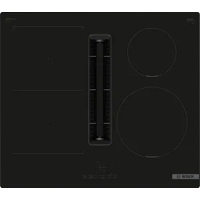 The BOSCH PVS611B16E induction hob is designed to offer an efficient, safe, and precise cooking experience at home, perfectly adapting to modern kitchen needs thanks to its integration and advanced features. With a width of 59 cm, it fits easily into most standard countertops, allowing for a simple kitchen upgrade. Equipped with four independent cooking zones, this hob enables preparing multiple dishes simultaneously, optimizing time and space, while its maximum power of 7,400 W ensures fast and controlled heating, ideal for boiling water in seconds or maintaining slow cooking with great precision. The black finish and rectangular surface add elegance and simplicity, easily matching various kitchen styles. Its built-in format allows flush installation into the countertop, contributing to a clean and functional aesthetic. It features a built-in display that facilitates intuitive control of all functions, especially useful for comfortably and visually managing cooking times and power levels. As an induction hob, it heats only the cookware, reducing burn risks and making daily cleaning easier since spills do not stick to the surface. The energy efficiency rating B combines optimized consumption with high performance, reinforcing its position as a reliable solution for users seeking performance, safety, and modern design in their kitchen equipment. In summary, the BOSCH PVS611B16E is a versatile and functional choice that transforms any cooking space into an efficient and comfortable environment.