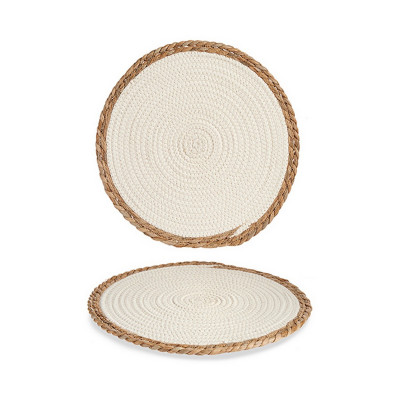 El salvamantel de la marca Gift Decor es un accesorio funcional y decorativo que combina la elegancia natural y la practicidad en el hogar. Con un diseño cuidado que presenta un color blanco predominante complementado por un borde en tono natural, este tapete aporta un estilo discreto y versátil que se adapta fácilmente a diversos ambientes y estilos de mesa. Fabricado en fibra natural, garantiza una textura resistente y tacto agradable, adecuada para proteger superficies de calor, manchas y arañazos durante las comidas. Sus dimensiones aproximadas de 35 cm lo convierten en un salvamantel de tamaño estándar, idóneo para colocar bajo platos individuales o utensilios, contribuyendo a mantener el orden y limpieza en la mesa. Su procedencia asiática, específicamente de China, indica una fabricación que combina técnicas artesanales con un acabado pulcro y uniforme. Este diseño combina tonos blanco, marrón y natural, facilitando su integración con vajillas y manteles variados, enfatizando la sencillez y el estilo rústico-funcional. Este salvamantel es una solución práctica y estética para proteger superficies y dar un toque natural y armonioso al espacio de comedor. Un producto pensado para quienes valoran materiales naturales y una apariencia sobria que se adapta en cualquier ocasión y lugar.