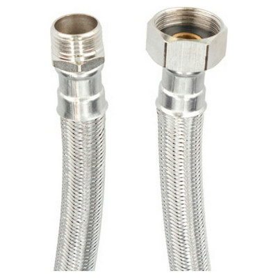 Le tuyau flexible de la marque Fontastock est une solution robuste et durable pour les installations sanitaires et de plomberie nécessitant des connexions fiables et résistantes. Ce tuyau flexible présente une dimension intérieure de 13 mm et une dimension extérieure de 19 mm, s’adaptant parfaitement à diverses configurations grâce à son design avec des raccords spéciaux thermo "Resistant" combinant une extrémité mâle de 1/2" avec une extrémité femelle de 3/4", et une longueur totale de 40 cm, facilitant son intégration dans des espaces réduits ou difficiles d’accès. Sa structure est composée d’un tube intérieur en caoutchouc EPDM, un matériau reconnu pour sa haute résistance à l’oxydation, à la chaleur et à la pression, garantissant une performance fiable et sûre pour le passage des liquides. Le tuyau est renforcé par un tressage en acier inoxydable AISI 304, offrant une grande résistance mécanique et une protection contre la corrosion, élément clé pour préserver l’intégrité du système hydraulique dans le temps. De plus, les raccords sont fabriqués en laiton nickelé, assurant une bonne résistance à l’usure et à la corrosion, tandis que la bague de serrage est également en acier inoxydable AISI 304, maximisant la durabilité et la solidité de la connexion. Il intègre des joints en caoutchouc EPDM intégrés, offrant une étanchéité efficace qui prévient les fuites, aspect essentiel pour éviter les problèmes d’humidité et les dommages associés. Ce produit est présenté dans un format pratique pour les détaillants et professionnels, avec une présentation individuelle sur accroche plastique et conditionné en sachets de 10 unités, facilitant son stockage et sa distribution. En résumé, le tuyau flexible Fontastock combine des matériaux de haute qualité et un design pensé pour offrir résistance, sécurité et adaptabilité, se positionnant comme une option fiable sur le marché des accessoires pour installations de plomberie.