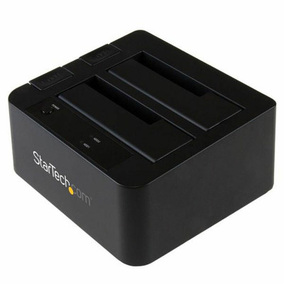 La station d’accueil Startech SDOCK2U313 est une station multifonction conçue pour gérer efficacement les disques durs et SSD de 2,5" et 3,5" utilisant les interfaces SATA I, SATA II et SATA III. Cette station offre une connectivité USB 3.2 Gen 2 (compatible USB 3.1 Gen 2), permettant des débits jusqu’à 10 Gbps, soit le double de la vitesse de l’USB 3.0 standard, assurant des transferts rapides sans goulots d’étranglement. Son design à chargement par le dessus permet d’insérer les disques sans outils ni plateaux, avec un système d’éjection par bouton pour une extraction sûre et rapide des unités. Fabriquée en plastique noir, elle intègre des voyants LED indiquant l’activité et l’alimentation, offrant un contrôle visuel du fonctionnement. Compatible avec la technologie UASP pour améliorer encore les performances de transfert, cette station supporte une capacité maximale combinée de 12 To (6 To par unité), répondant aux besoins de stockage les plus exigeants. Elle est fournie avec un câble USB type A vers B garantissant la rétrocompatibilité avec les appareils USB 3.0, 2.0 et antérieurs, augmentant sa polyvalence avec différents systèmes et équipements. Ses dimensions compactes de 148 mm de large, 132 mm de profondeur et 70 mm de hauteur la rendent adaptée aux bureaux domestiques comme professionnels. De plus, l’appareil fonctionne sous une tension d’entrée AC de 100-240 V et une sortie de 12 V, avec un courant d’entrée de 1,3 A assurant une alimentation stable des unités connectées. La station peut également être complétée par des adaptateurs pour disques durs IDE de 2,5" et 3,5", élargissant sa compatibilité avec différents formats et permettant son usage dans divers environnements. En résumé, cette station d’accueil offre une solution pratique et efficace pour les utilisateurs devant gérer plusieurs disques rapidement, avec fiabilité et compatibilité avancée dans un seul appareil organisé.