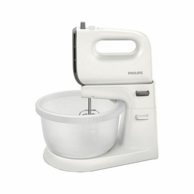 Philips HR3745/00, Viva Collection. Type: Robot mixer, Longueur du câble: 1,2 m, Capacité du bol: 3 L. Couleur du produit: Gris, Blanc. Matériau du boîtier/corps: Acrylonitrile-Butadiène-Styrène (ABS), Acier inoxydable. Puissance: 450 W, Fréquence d'entrée AC: 50/60. Accessoires inclus: Double balloon beater, Kneading tool