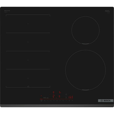 A placa de indução BOSCH PIX631HC1E é um eletrodoméstico projetado para oferecer um cozimento eficiente e moderno em ambientes domésticos. Este modelo destaca-se como uma placa de indução de alta tecnologia com quatro zonas de cocção, permitindo cozinhar vários pratos simultaneamente com rapidez e precisão graças ao seu potente desempenho de 7400 W. Apresenta dimensões compactas e funcionais, com uma largura de 59,2 cm, facilitando sua integração em cozinhas padrão de 60 cm de largura, otimizando o espaço sem perder capacidade. Sua superfície é fabricada em vidro de alta qualidade na elegante cor preto combinada com detalhes em cinza, materiais que não só conferem aparência sofisticada, mas também facilitam a limpeza e manutenção diária. A tecnologia de indução utiliza um sistema de aquecimento eletromagnético que aquece diretamente o recipiente, resultando em uso energético mais eficiente e maior segurança ao evitar o superaquecimento da área ao redor. Além disso, inclui funcionalidade de bloqueio para crianças, elemento crucial para a segurança em lares com crianças, impedindo o uso acidental da placa. Este modelo posiciona-se como uma solução prática e tecnológica dentro da gama média-alta da BOSCH, reconhecida pela durabilidade e precisão na cozinha, ideal para usuários que exigem rapidez no aquecimento, controle preciso e design discreto que se adapta a qualquer estilo de cozinha moderna. Em conjunto, a PIX631HC1E oferece uma combinação equilibrada de potência, tamanho compacto e segurança, proporcionando uma experiência de cozimento eficiente e segura.