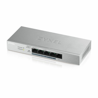 O switch ZyXEL GS1200-5HPV2-EU0101F é um switch gerido projetado para ambientes de redes pequenas e médias que exigem conectividade fiável e eficiente. Este dispositivo oferece 5 portas RJ-45 Ethernet Gigabit (10/100/1000 Mbps) que permitem conexões por cabo rápidas e estáveis, ideais para redes de escritório ou domésticas que demandam alta velocidade e baixa latência. O GS1200-5HP v2 destaca-se pela capacidade de comutação de 10 Gbit/s, garantindo um fluxo de dados fluido mesmo em ambientes com tráfego intenso. Possui uma tabela de endereços MAC com capacidade para 2000 entradas, facilitando uma gestão avançada da rede e uma alocação eficiente dos recursos de comunicação interna. Compatível com múltiplos padrões de rede como IEEE 802.3af, 802.3at (PoE), 802.3ab, 802.3u, 802.3x, 802.3az e 802.3p, assegura funcionamento compatível com diversas tecnologias e protocolos de otimização energética e controlo de fluxo, incluindo energia sobre Ethernet (PoE) para alimentar dispositivos diretamente do switch sem cabos adicionais. A sua construção integra um chassis metálico robusto em tons preto e cinza, que, juntamente com um interruptor de ligar/desligar, indicadores LED e portas USB para funções adicionais, oferece durabilidade e ergonomia na instalação. Além disso, o suporte para comunicação bidirecional em full duplex melhora o desempenho ao permitir transmissão e receção simultâneas de dados por porta. Este modelo é ideal para utilizadores que procuram um equipamento profissional, com gestão avançada e versátil, capaz de suportar a crescente demanda de conexões em redes distribuídas.