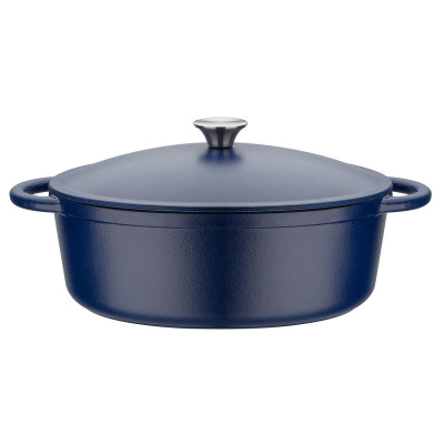 A caçarola com tampa 717328 da marca GSW é um utensílio de cozinha fabricado em ferro fundido de alta qualidade com acabamento exterior em azul e fundo esmaltado branco que facilita a limpeza e manutenção. Este design robusto e eficiente garante uma distribuição e conservação ótimas do calor, permitindo um cozimento homogêneo e controlado dos alimentos. Seu tamanho de 33 x 26 cm oferece capacidade adequada para preparar diversos pratos, sendo especialmente útil para guisados, ensopados e outras preparações que exigem retenção de umidade e calor durante o cozimento. A caçarola é compatível com todas as fontes de calor, incluindo indução, e pode ser usada em forno até 240 °C, ampliando as possibilidades culinárias. Além disso, possui uma tampa especialmente desenhada com pontos que harmonizam a temperatura interna e melhoram o cozimento dos ingredientes. O produto também é compatível com lava-louças, oferecendo praticidade na limpeza diária. A combinação dos materiais, aço inoxidável e ferro fundido, confere durabilidade e resistência, tornando esta caçarola uma ferramenta confiável para cozinhas domésticas ou profissionais. Em resumo, esta caçarola GSW Blue Magic é um acessório funcional que oferece versatilidade, resistência e excelente desempenho térmico para quem busca um produto duradouro e adaptável a várias técnicas culinárias.